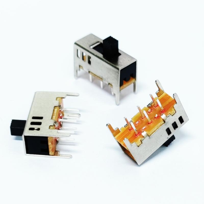 L'interruttore a scorrimento 2P3T è un interruttore di controllo bipolare a tre vie (2Pole 3Throw) che consente la commutazione a tre stati per due circuiti indipendenti (ad esempio, selezione on/off/modalità) tramite un'operazione di oscillazione, ideale per scenari complessi che richiedono un controllo sincronizzato di più circuiti.