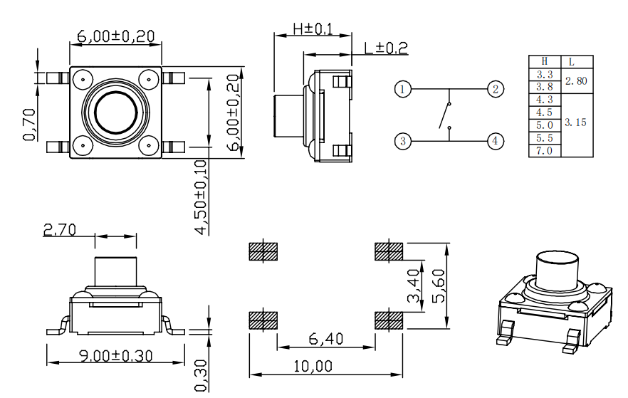 Compatto e preciso (6×6 mm) - Il design salvaspazio si adatta perfettamente a layout ristretti, mantenendo al contempo una sensazione tattile reattiva per un input utente preciso.