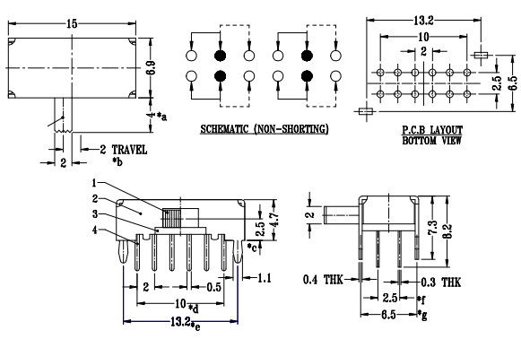 Caratteristiche principali dell'interruttore a scorrimento 4P2T (conciso e combinato)