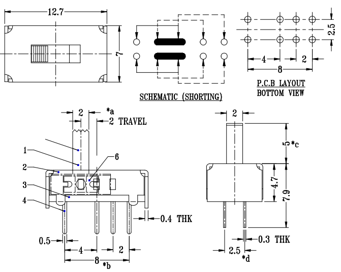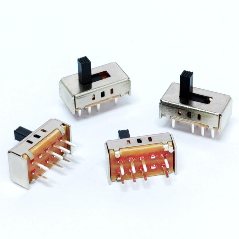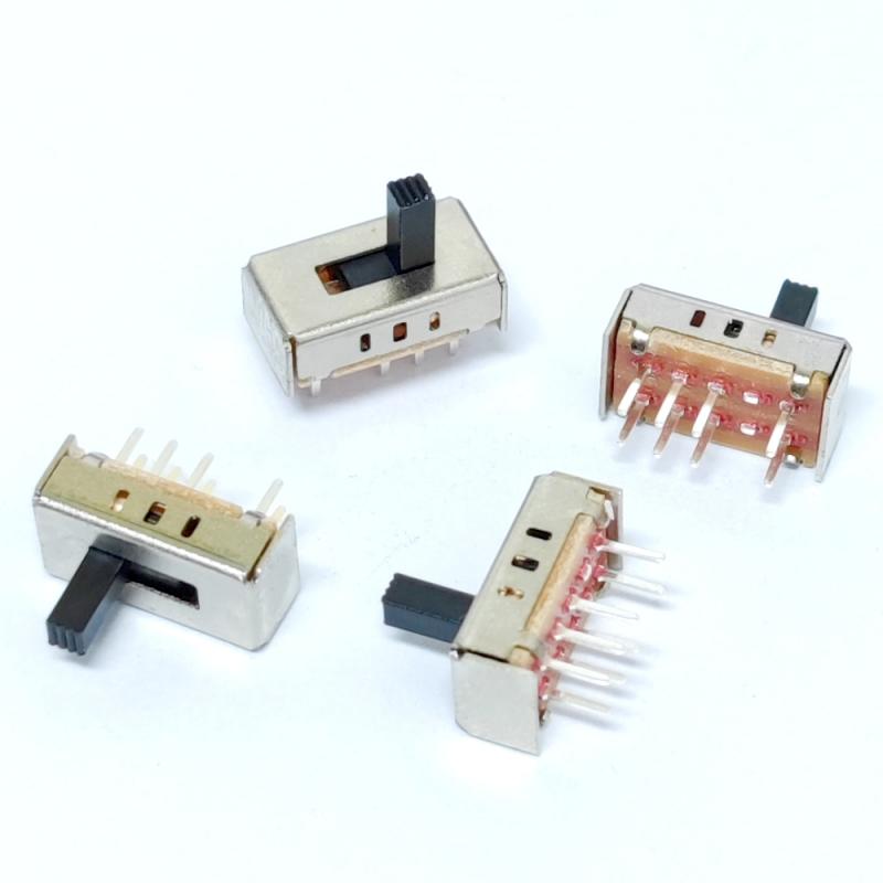 L'interruttore a scorrimento 2P3T è un interruttore di controllo bipolare a tre vie (2Pole 3Throw) che consente la commutazione a tre stati per due circuiti indipendenti (ad esempio, selezione on/off/modalità) tramite un'operazione di oscillazione, ideale per scenari complessi che richiedono un controllo sincronizzato di più circuiti.